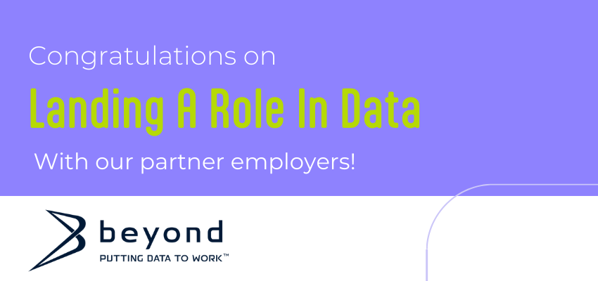 A huge congratulations to Victoria Sanders, PhD for landing a role at our partner employers Beyond: Putting Data To Work! We are so incredibly proud, and are excited to see the career moves you make 🎉